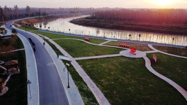 与此同时,沧州市全域打造“蓝绿交织、林水相依”的运河生态,在运河沿线可视范围内开展绿化提升,能绿则绿、应绿尽绿,运河流经的8县(市、区)308公里堤顶路全面实现硬化。蜿蜒运河宽路依,绿树红花微风习,人们三五成群,或骑行,或散步,听水声,赏美景。运河两岸,到处是河与人和谐共生的图景。