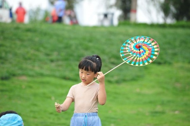 小朋友在沧州市大运河生态修复展示区游玩(2021年7月6日摄)。