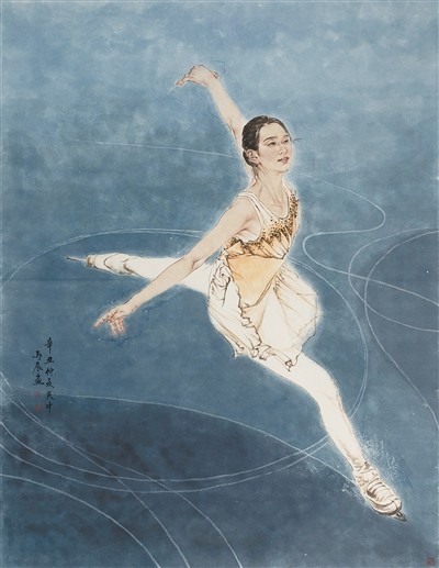 许多美术工作者从现实生活出发,生动刻画当代青年满怀希望、昂扬奋发的精神面貌。如李青稞中国画《天骄》,以精妙的笔触,细致勾勒出3位年轻女子射箭运动员的飒爽英姿。三人均目视远方的靶标。画面右侧的姑娘正屏住呼吸、开弓引箭,笃定而自信。孙震生中国画《蝶舞星河》,则以俯视的视角,描绘了一位花样滑冰女选手在冰面上翩翩起舞的优美姿态。女选手神情愉悦、动作舒展,尽显运动员胸有成竹的风采。张辉版画《向光注视》,以三联画的形式,并置不同职业的当代青年肖像。富有现代审美的画面语言,展现了青年一代从青涩走向成熟、走向坚定的精神面貌。