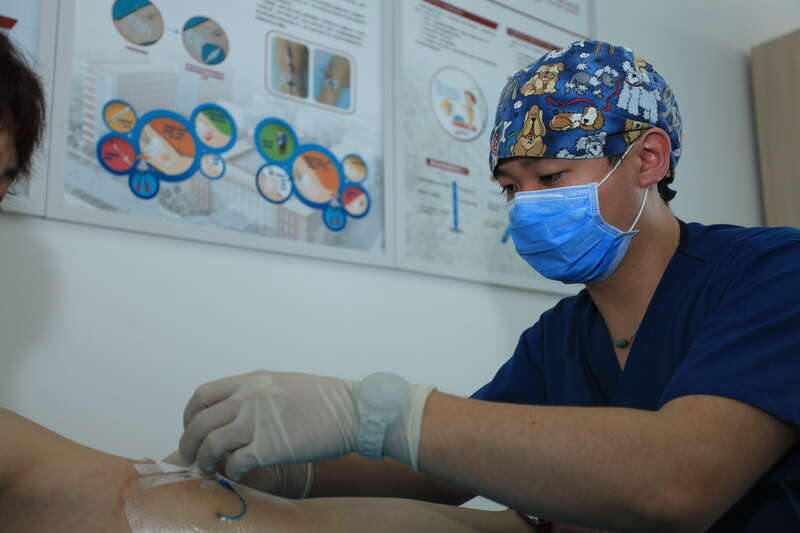 为了提升护理服务品质,北京市医院管理中心审批了多家市属医院的“护理工作室”,“赵路中心静脉导管护理工作室”已通过审批。图为赵路在工作室为患者进行中心静脉导管维护。(受访者供图)