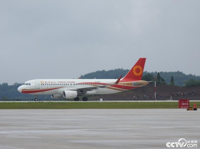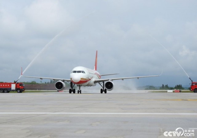 5月19日,由成都航空公司执飞的成都—达州首飞航班,平稳降落达州金垭机场。这标志着投资26.62亿元建成的达州金垭机场正式通航,原达州河市机场同步关闭,现有14条航线平移至金垭机场。图片来源:视觉中国