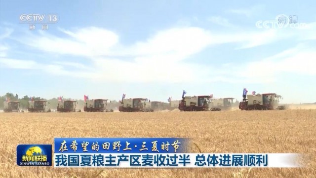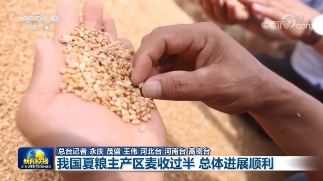 央视网消息(新闻联播):眼下,夏粮主产区小麦收获过半,黄淮海主产区全面开镰,全国麦收总体进展顺利。