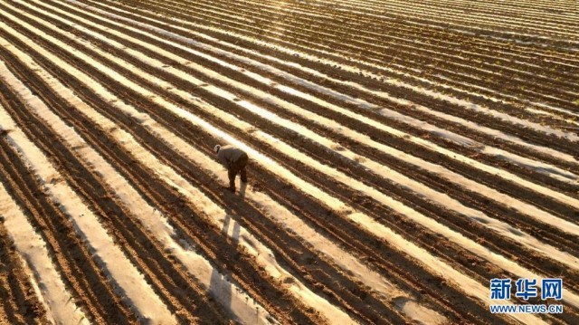 农民正在打理田地。新华网 发(肖巍 摄)