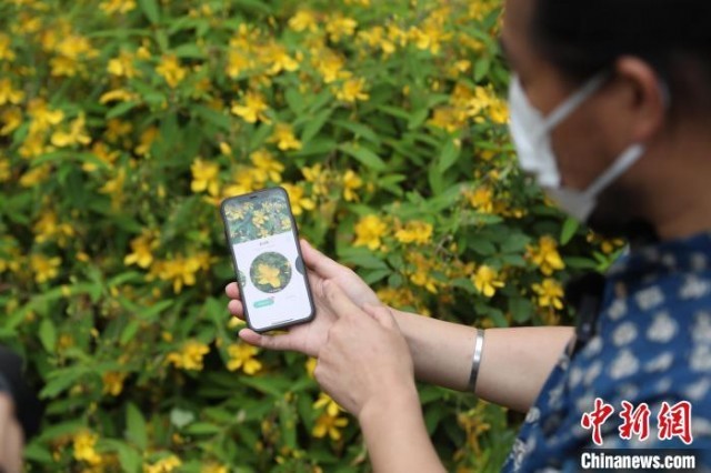 暴岩展示花卉识别软件使用过程 张亨伟 摄
