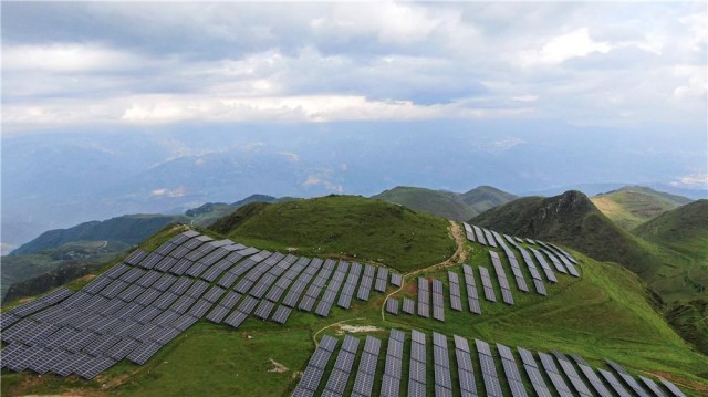 群山之间,连片的光伏电站为绿色发展“充电”、让群众收获“阳光红利”;