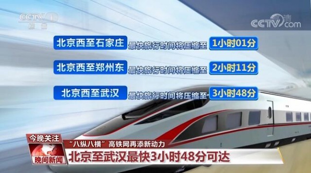 2012年开通运营的京广高铁,10年来已发送旅客16亿人次,此前最高运营时速为310公里。此次调图后,京广高铁京武段按时速350公里高标运营,开行时速350公里高品质标杆列车57列,覆盖湖北、陕西、广东、云南等16个省份,沿线城市间旅行时间普遍缩短。北京西至石家庄、郑州东、武汉最快旅行时间将分别压缩至1小时01分、2小时11分、3小时48分。