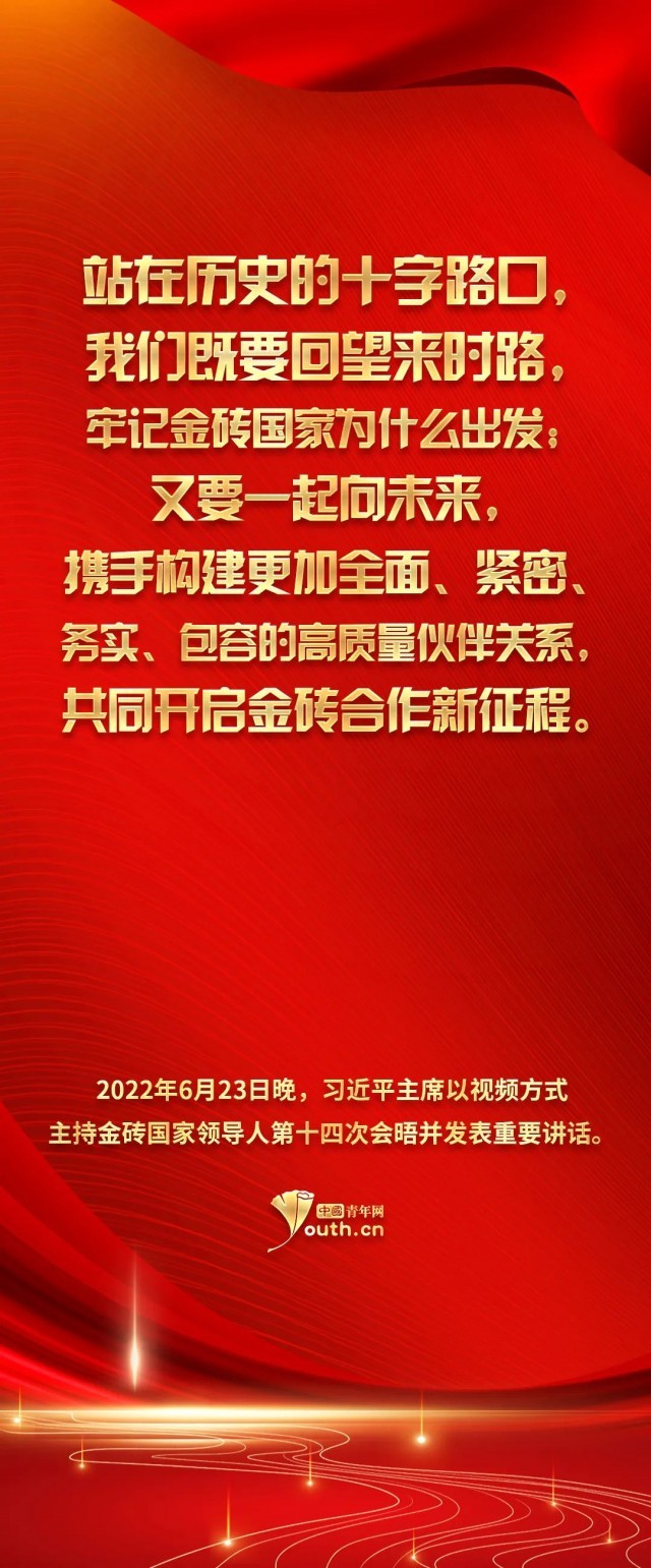 习近平主席在金砖国家领导人第十四次会晤上的重要讲话中指出,站在历史的十字路口,我们既要回望来时路,牢记金砖国家为什么出发;又要一起向未来,携手构建更加全面、紧密、务实、包容的高质量伙伴关系,共同开启金砖合作新征程。