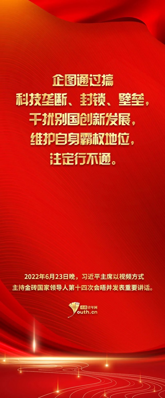 习主席在讲话中指出,16年来,面对惊涛骇浪、风吹雨打,金砖这艘大船乘风破浪、勇毅前行,走出了一条相互砥砺、合作共赢的人间正道。在世界百年变局和世纪疫情相互交织的背景下,少数国家试图“脱钩断链”,构筑“小院高墙”。中国则坚持和衷共济、合作发展、开拓创新、开放包容,这才是引领世界走向互利共赢的“人间正道”。