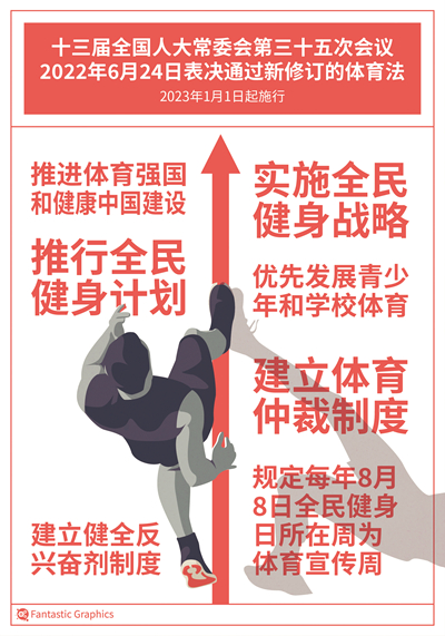 时隔27年,体育法迎来了全面修订。十三届全国人大常委会第三十五次会议近日表决通过了《中华人民共和国体育法(修订草案)》,并将于明年1月1日起施行。