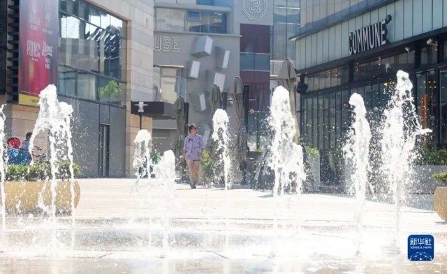 7月10日,上海市中心城区气温一度达到40℃,上海市今夏首个高温红色预警发布 图/新华社
