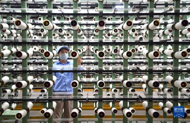 中国平煤神马集团平顶山神马帘子布发展有限公司的员工在查看尼龙丝道(2019年3月20日摄)新华社记者 李嘉南 摄