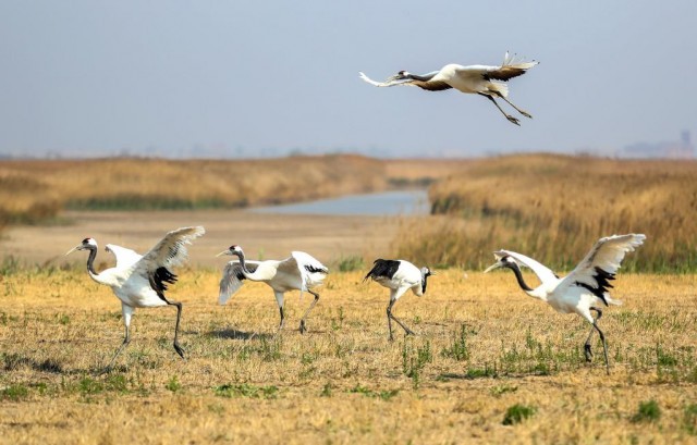 丹顶鹤是被列入《世界自然保护联盟濒危物种红色名录》的国家一级保护动物。过去十年间,盘锦加大环境保护力度,把近8万亩围海养殖滩涂逐步恢复成自然滨海湿地,并制定相关文件,不断加大政策扶持力度,引导支持原有围海养殖业户转向开放养殖。