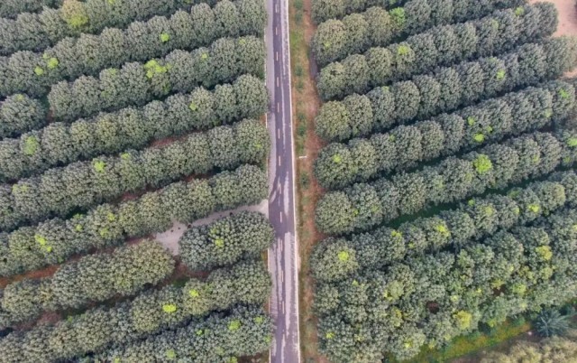 2020年9月23日在兰考县堌阳镇徐场村拍摄的泡桐树(无人机照片)。新华社记者 郝源 摄
