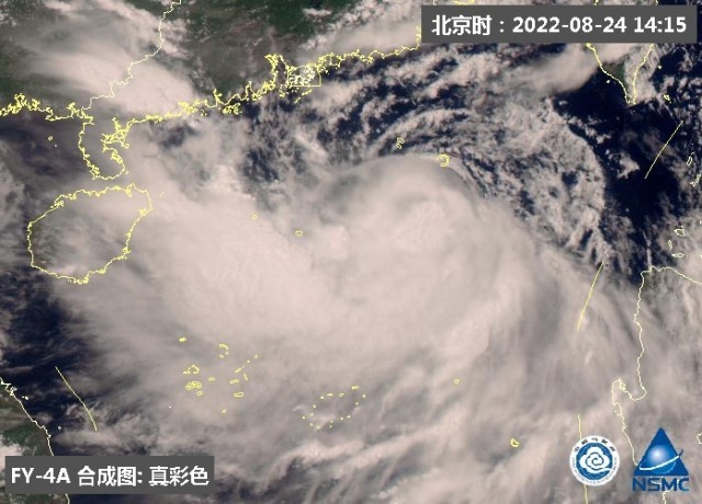 从云图上看,今天下午14时前后,台风“马鞍”结构仍是中心不对称,其西侧和南侧云系发展旺盛,对流活跃。