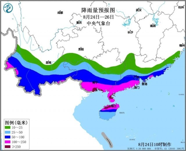 受其影响,今夜开始,华南沿海的降雨将逐渐增强。今夜到明天,广东东部沿海和西部、广西南部、海南岛等地有大到暴雨,其中,广东西南部沿海、广西南部沿海、海南岛北部等地的部分地区有大暴雨,局地有特大暴雨。