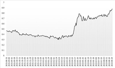 8月30日,中国人民银行授权中国外汇交易中心公布,人民币对美元中间价报6.8802,相较前一交易日调贬104个基点。当日,人民币对美元即期收盘价6.8980。