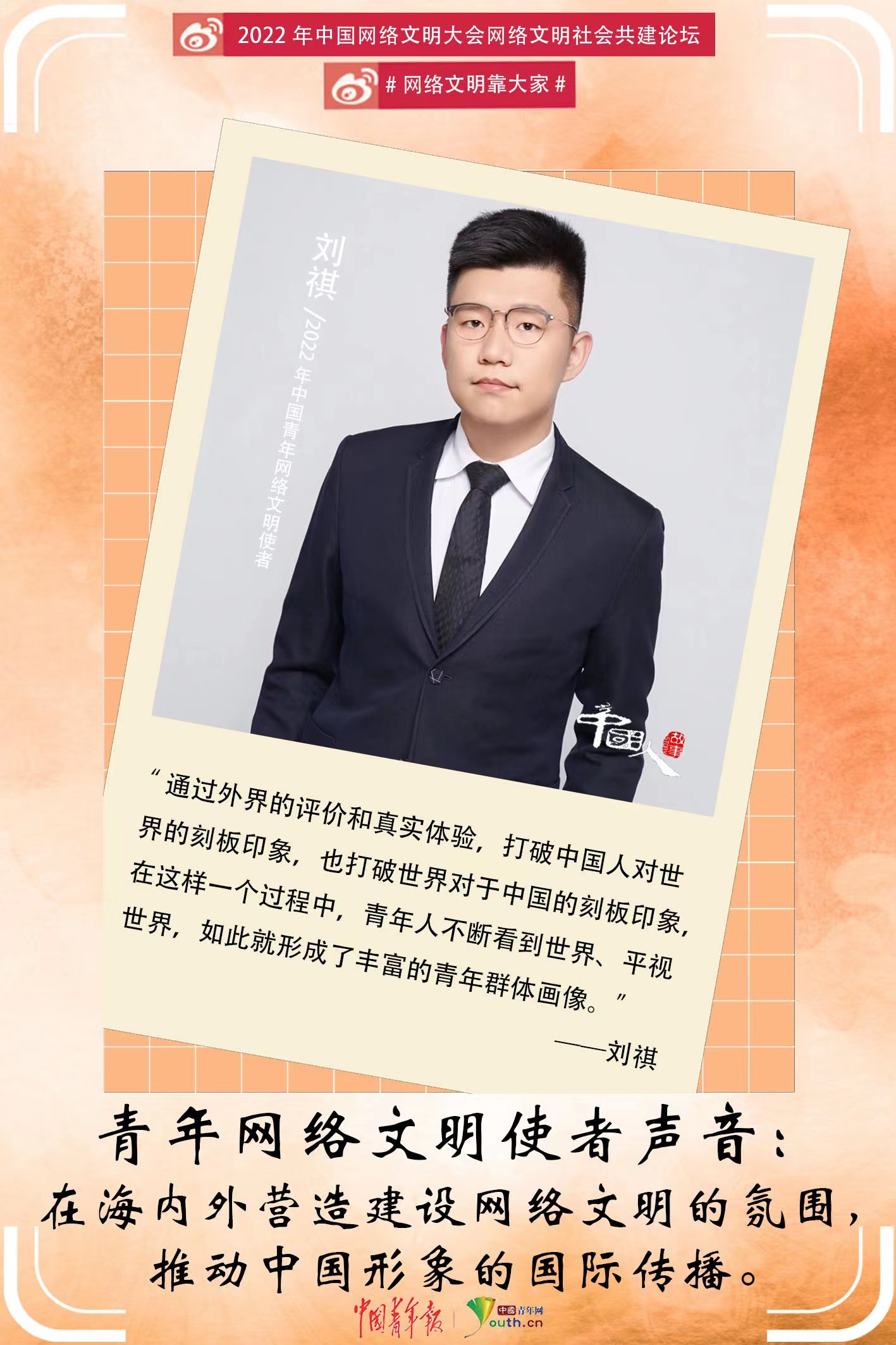 近日,2022年中国网络文明大会网络文明社会共建论坛在天津举行。网络文明建设,青年在行动!他们是网络文明的使者,他们传播网络文明火种、带头维护网络文明生态,用自己的点滴努力为“人人参与、齐抓共治”的网络文明建设贡献着青春力量。其实,不只是他们,还有千千万万的好青年、好网民,网络文明使者和他们的故事,就在你我身边,就是你我他,让我们一起走进他们的故事——
