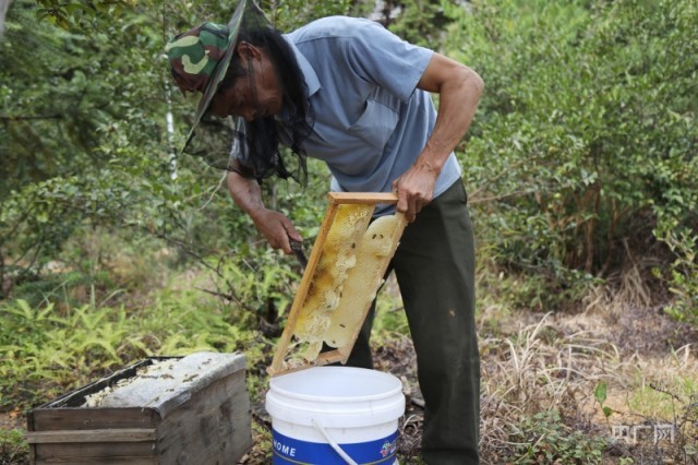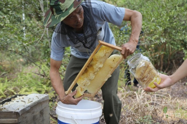 蜂农们正忙着采割蜂蜜,感受丰收的喜悦(央广网发 贺治斌 摄)