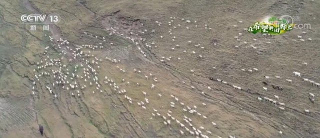 转场途中,牧民们赶着畜群日出而行、日落而息,成百上千的牛羊在牧民的引导下翻山越岭,前往秋季牧场。