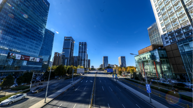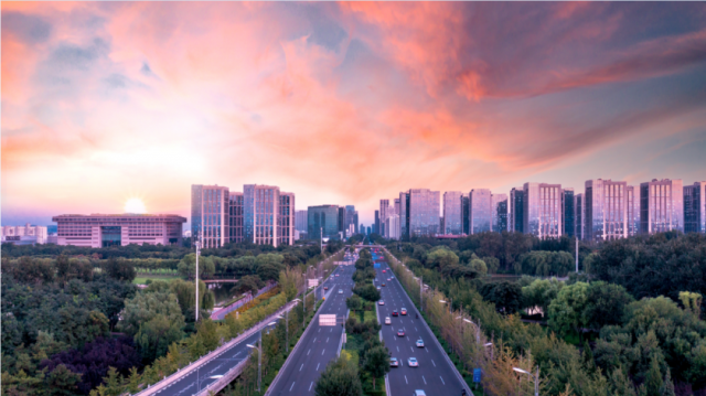 朝阳初升,荣华路已经车水马龙。(北京经开区工委宣传文化部供图)