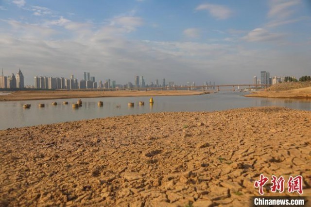 图为赣江南昌段,裸露开裂的河床。(资料图) 刘力鑫 摄