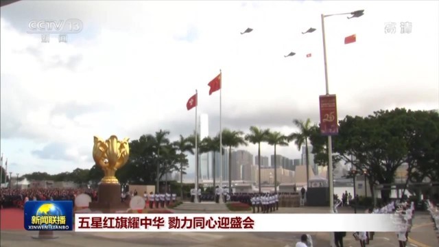 今天,香港特别行政区政府在金紫荆广场举行升旗仪式,庆祝中华人民共和国成立73周年。鲜艳的五星红旗和香港特区区旗在金紫荆广场升起;之后,直升机在维多利亚港上空飞过,展示国旗和区旗;轮船在海面喷洒水柱敬礼。