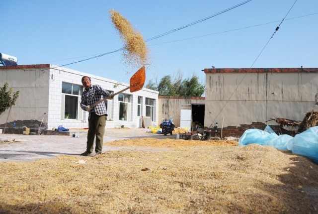 眼下,在巴彦淖尔市临河区双河镇团结村,农户们正在院子里脱粒、清选大豆。团结村村民白利军说:“我家一共有99亩地,今年拿出62亩地进行大豆玉米带状复合种植。其中,玉米已经收割完,每亩产量800公斤左右,跟往年差不多;大豆正在清选,预计每亩产量在100公斤左右。整体来看,今年的收成稳中有增。”