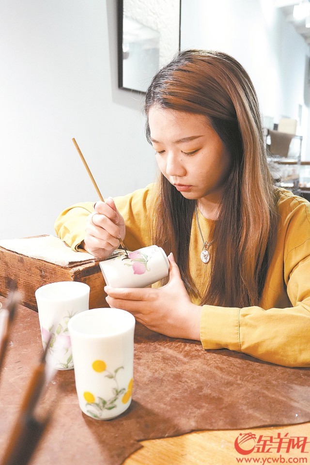 抱着大胆创新的精神,蔡思哲与何蔚菁制作了一批又一批实用性广彩物件,精美而富有时代气息的耳环、项链吊坠、茶杯等令人耳目一新。“面对有数百年历史底蕴的广彩,在创新前,首先要尊重传统,在学习传统技艺中打稳基础,为创新积淀底气。”在蔡思哲眼中,通过临摹、制作经典作品,能为后续的创作寻找突破点。