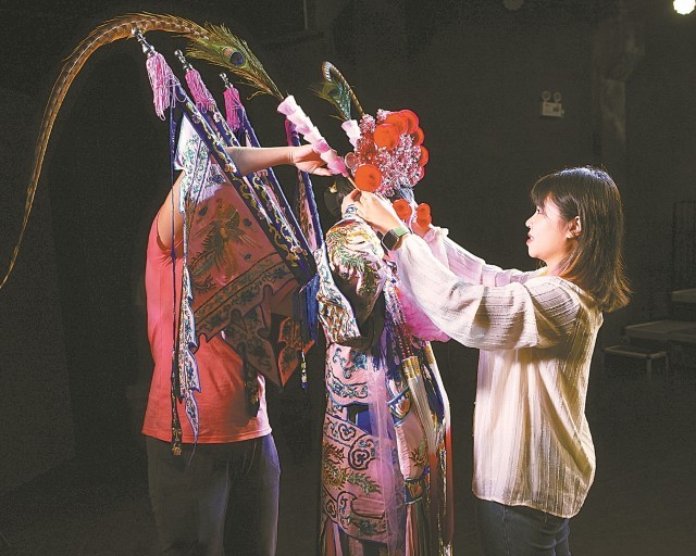 何凤婷帮粤剧演员整理头饰 受访者供图