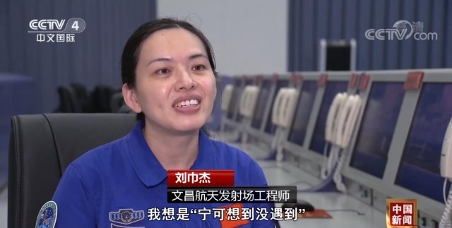 文昌航天发射场工程师 刘巾杰:我想是“宁可想到没遇到”,不能“遇到没想到”。就是我们会对整个的发射流程进行很细致的分析和讨论,来应对可能出现的任何突发情况,我觉得我这一次应该会比上次做得更好。