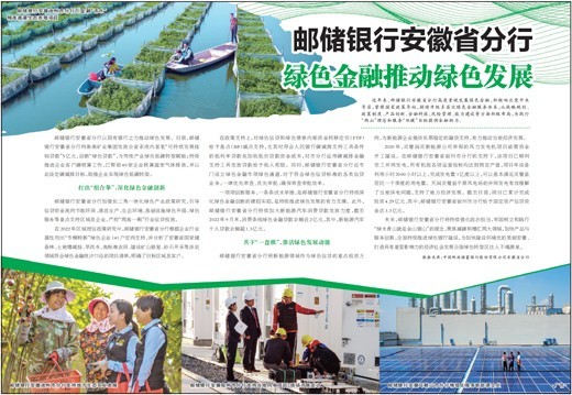 近年来,邮储银行安徽省分行高度重视发展绿色金融,积极响应党中央号召,紧跟国家政策导向,持续升级多层次绿色金融服务体系,从战略规划、政策制度、产品创新、金融科技、风险管理、能力建设等方面积极布局,为践行“两山”理念和服务“双碳”目标提供金融助力。