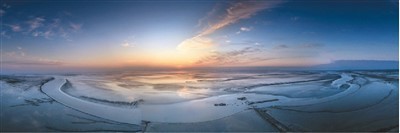 图为盐城市东台条子泥湿地日出景象。