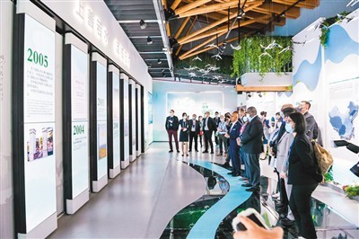 日前,在武汉参加《湿地公约》第十四届缔约方大会的中外代表参观中国履行《湿地公约》30周年成就展。
