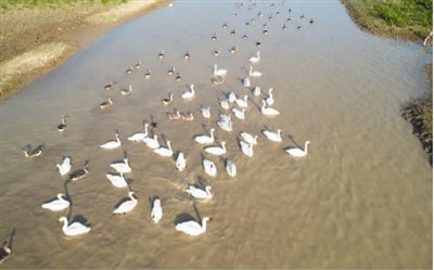 图为11月在湖南西洞庭湖湿地拍摄的小天鹅和灰雁。