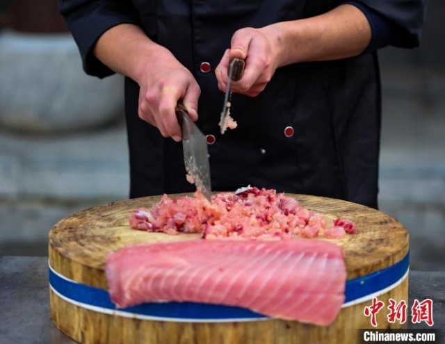 分割出的鱼肉剁成馅,用来做鱼丸汤、鱼肉饺子。 王耀 摄