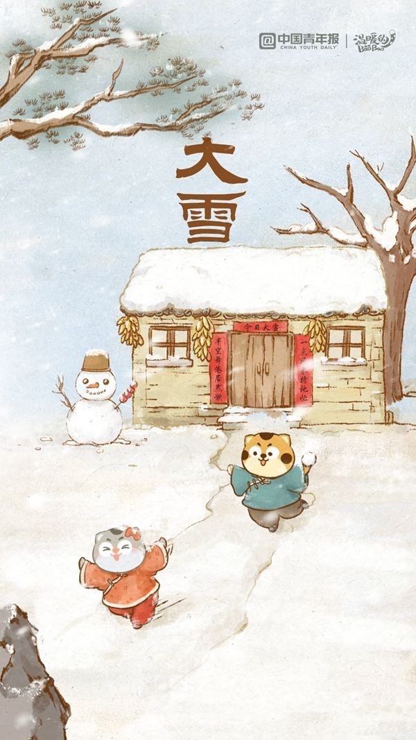 大雪,“十一月节,至此而雪盛也。” 在宋代诗人杨万里的《观雪二首(其一)》中,落雪在黄昏中翩翩起舞:“坐看深来尺许强,偏於薄暮发寒光。半空舞倦居然懒,一点风来特地忙。”更为人熟知的雪景不外乎唐代诗人柳宗元写下的“孤舟蓑笠翁,独钓寒江雪”。“打卡”这一时节的方式既有赏雪景、打雪仗,也有腌腊肉、烤地瓜,人们穿上厚衣裳,迎接仲冬的到来。你所在的地区是否初雪已落?欢迎在评论区分享。(图/张玉佳 文/尹希宁)