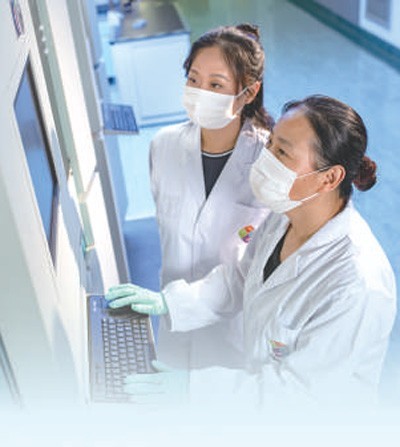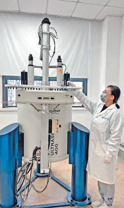 上海市张江药谷公共服务平台技术人员在操作核磁共振检测仪。