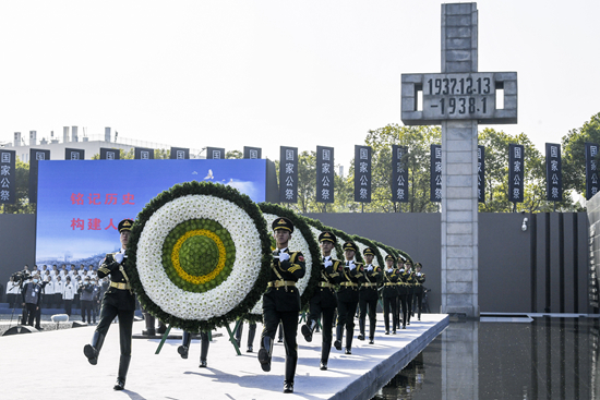12月13日是第九个南京大屠杀死难者国家公祭日。上午,南京大屠杀死难者国家公祭仪式在侵华日军南京大屠杀遇难同胞纪念馆举行,约3000名各界代表胸前佩戴白花,默然肃立,为85年前的30余万遇难同胞默哀,并由仪仗队敬献花圈。