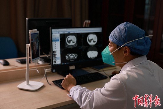 相比之下,互联网医院诊室里安静得多。12月27日下午,朝阳医院肿瘤科副主任医师关印刚嘱咐完一名患者的用药事项,又接通了另一名患者的视频,并在电脑上打开了他的医学影像。半个多月前,朝阳医院组织呼吸科、胸外科、中医科、肿瘤科、产科、生殖中心6个科室的医务人员为患者提供“新冠感染在线问诊”服务,在这一特殊时期,实现医疗服务供给量的增加。