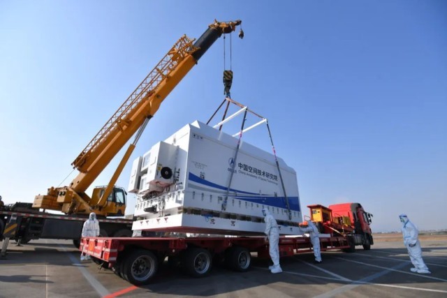 ▲ 卫星包装箱运输(张翰 摄)