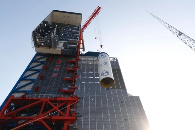 ▲ 箭体吊装(陈小龙 摄)