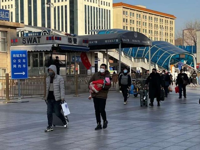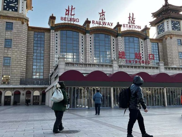 1月16日,2023年春运的第10天,北京站北广场上,旅客或肩挑手拎着行李脚步匆匆,或怀抱幼儿归心似箭。(中国青年报·中青在线见习记者 任昊 摄)