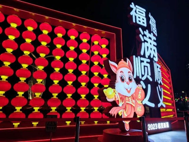 1月15日晚,北京市顺义区光明广场,“玉兔送吉祥”灯饰景观,明亮喜人。(中国青年报·中青在线记者 杨海琴 摄)