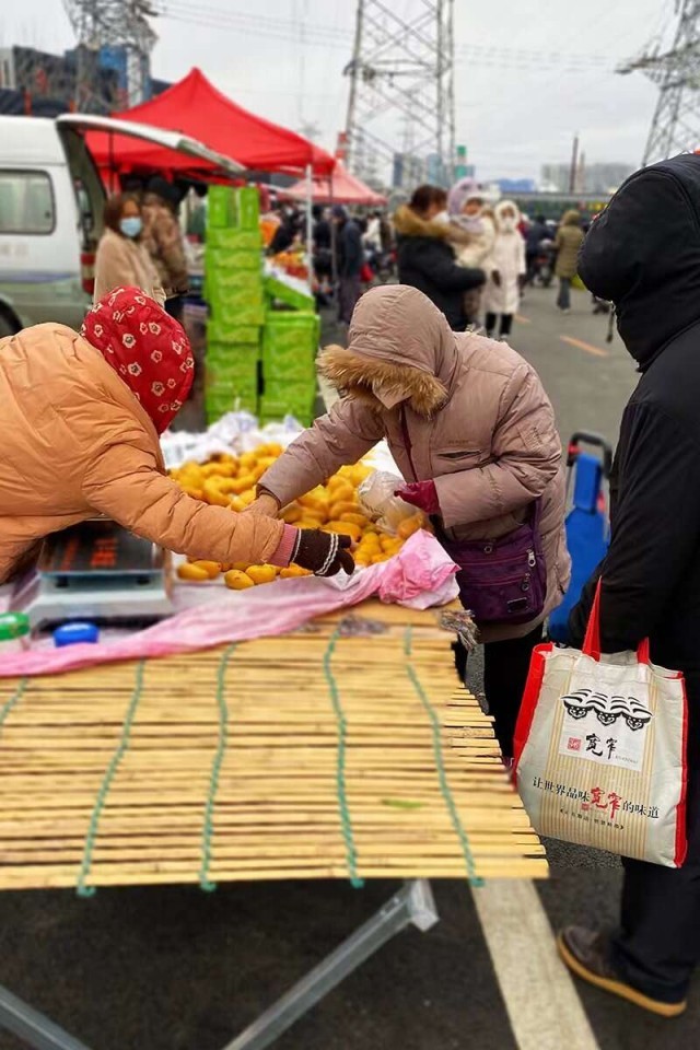 1月14日,是腊月二十三北方小年,人们在北京昌平三旗百汇大集挑选水果,准备辞旧迎新阖家团聚。(中国青年报·中青在线见习记者 李悠扬 摄)