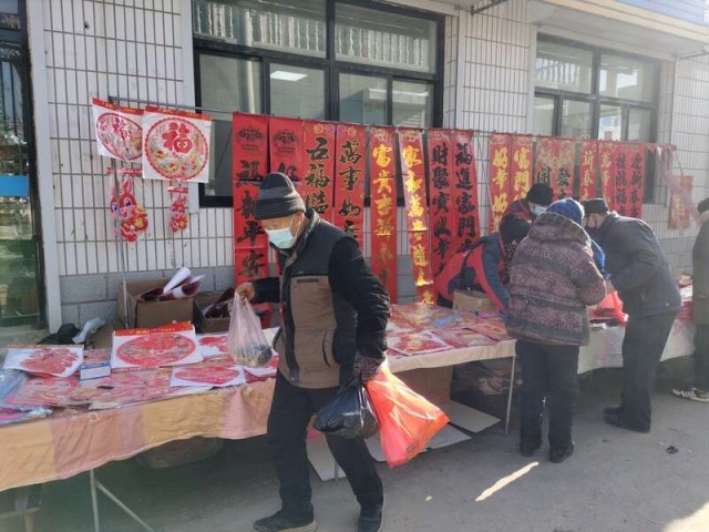 1月15日,河北保定的农村大集上,大红灯笼、中国结、福字等新年饰品让人应接不暇,整个集市洋溢着浓浓的过年气息,人们认真挑选春联福字。(中国青年报·中青在线记者 张胶 摄)