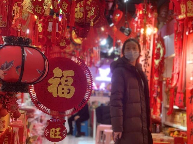 1月16日,北京百荣商城人们在挑选彩灯、对联、年画等饰品装扮农历新年。(中国青年报·中青在线记者 朱宏利 摄)