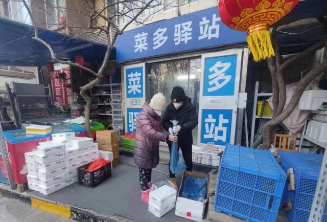 同样春节不打烊的还有北京市西城区依莲轩小区内的菜多驿站,郝刚、贾雪夫妇二人经营的这家驿站,不仅为业主邻居提供快递服务,还负责多个平台的生鲜团购和分发工作,每天都忙忙碌碌,工作量极大。春节临近的时候,业务量更是猛增。1月19日,天气寒冷,大风狂卷,一些蔬菜放在露天很容易冻坏,贾雪一边反复在微信群里提醒邻居尽快提货,一边手脚麻利地为前来提货的业主分装货品。(中国青年报·中青在线记者 齐琪 摄)
