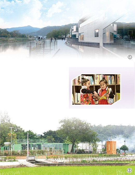图③:在广东中山市左步村,农家书屋的玻璃书房在稻田边、古树旁,别具一格。