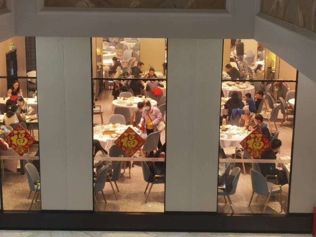 “今年除夕,年夜饭预定情况非常火爆,包房早早就订满了,好像回到了几年前”,福田区一家老牌粤式酒楼的大堂经理告诉记者,他们店大年三十下午及晚上的包厢提前一周就已订满,和去年相比,市民出来聚餐的意愿明显增强了。