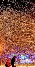 民间艺人在四川省华蓥市禄市镇表演“打铁花”。新华社发